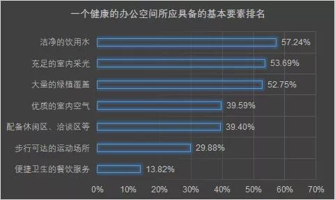 对于用户来说,办公空间内应具备的最重要的前三大要素分别是:水、采光、绿植,这是支撑一个办公空间健康与否的最基本要求。