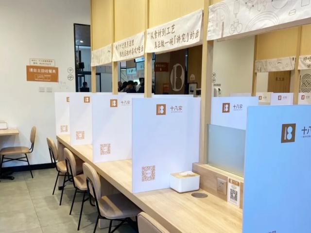 除此之外,店内座位可选择单人式隔断、两人桌、或四人桌,在布局细节中表达着对食客的关怀和考虑。想一个人静静的吃面也不会受到旁人打扰,想和同事结伴吃面也无妨。