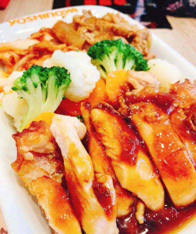 照烧鸡排饭和招牌牛肉饭作为吉野家一直以来的老味道,当然要一次吃到满足,滑嫩鸡肉和甜鲜的牛肉带来的满足感无敌了。